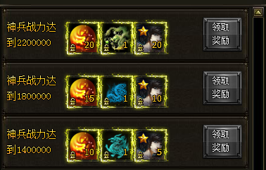 达到指定战力即可点击面板下方的【目标奖励】按钮领取。