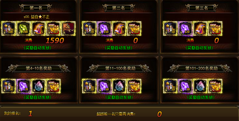活动时间内,所有登陆的用户均会自动参与活动。系统会根据玩家消费总金额进行排名。