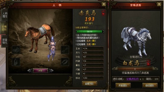 3)可以根据活动获得龙魂与龙灵来提升坐骑的地战力属性。