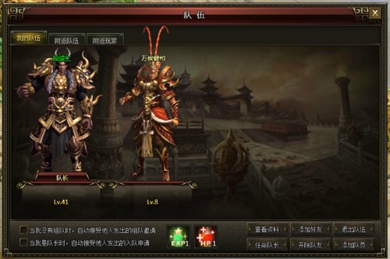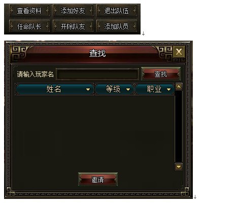 2.邀请式。在组队界面中选择添加队员按钮,然后在打开的玩家查找界面中,搜索或直接添加玩家;或者是在附近玩家和附近队伍的页签中,选择添加队员或申请入队。本本地图的玩家都会被现实在玩家查找界面中。