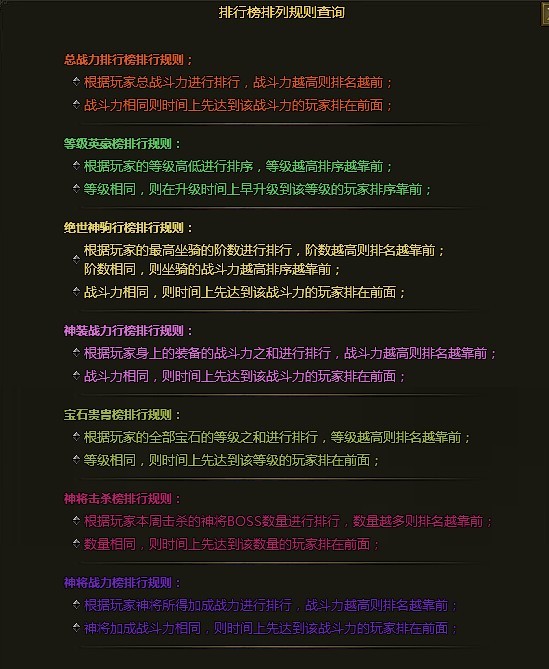排行榜是玩家展示实力战场,这里能让你万众瞩目!能让你一战成名!