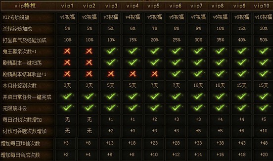 vip9:开启VIP9副本;鉴定装备中开启至尊鉴定;