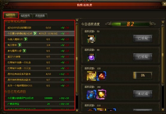 当玩家完成了相应的任务后,即可获得相应的活跃度。