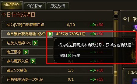 没关系,玩家只需点击任务右侧的绿色小箭头,系统将立即为您完成本次活跃任务,让
