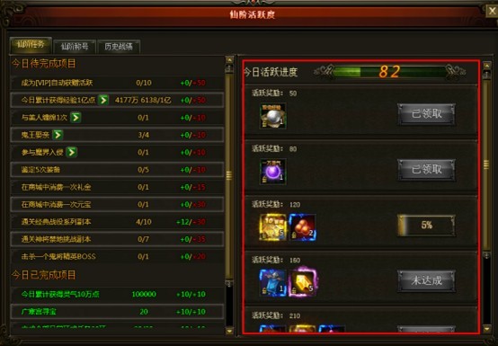 在大闹天宫OL中做任务的时候,每次都会得到相应的仙阶活跃度,而积累的活跃度越