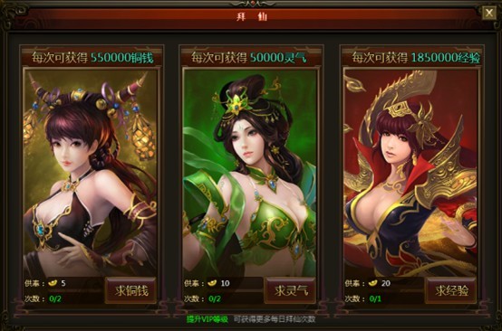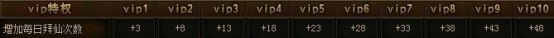 提升自己的VIP等级啦!让我们来看看不同的VIP等级每日可以获得多少的拜仙次数吧!