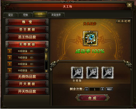 玩家可以通过天工坊-合成功能合成或升级套装。
