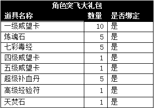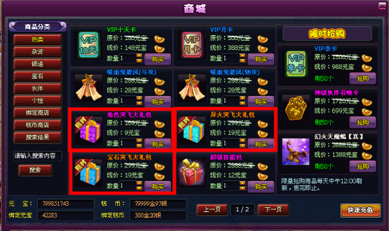 角色突飞大礼包:限时抢购价格9元宝