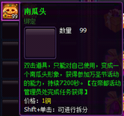 注:双倍经验buff必须处于南瓜头变身状态下才有效!