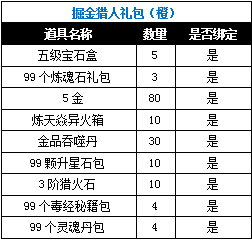 掘金猎人礼包,随机开出以下道具其中一种;每日满足累计使用1000元宝攻击“幽寒虎”能够获得“掘金猎人礼包”