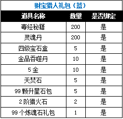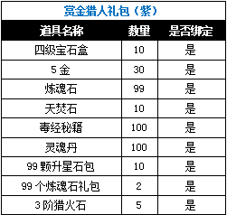 赏金猎人礼包,随机开出以下道具其中一种;每日满足累计使用600元宝攻击“猛虎”能够获得“赏金猎人礼包”