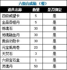 “六级宝石礼包(宝石类型)”*1、六级合成箱*1