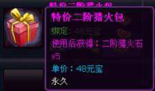 特价二阶猎火包:售价48元宝(原价185元宝)