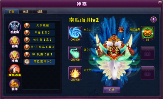 6. 南瓜面具+水之力,火之力,风之力,可以在神器界面打造成南瓜面具lv2
