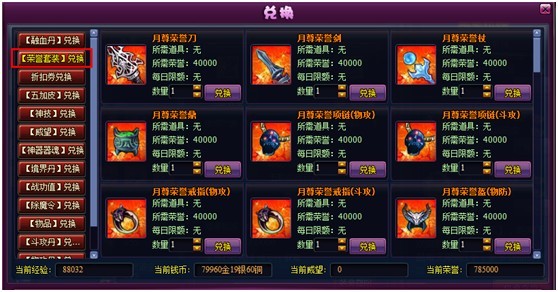 装备进阶功能,可以把装备进阶为更高等级的装备,并保留一定的装备等阶和强化等级。比如月尊荣誉套装可以通过装备进阶功能进阶为洪尊荣誉套装。