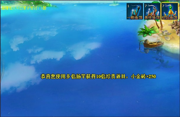 本次新增多次3次扬杆和10次扬杆功能,可以消耗元宝获得多次钓鱼的奖励,但是只会消耗1个鱼饵