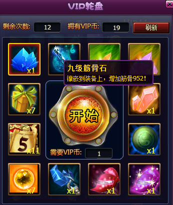 1) 优化了vip轮盘的奖励,增加了九级宝石,勋章礼包,圣升星石等珍贵道具