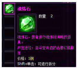 (1) 副本中可获得魂炼材料-魂炼石。