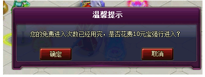 (2) 当免费次数用完之后,可通过花费元宝强行进入,每天最多强行进入2次。