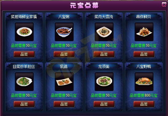 4、如果想直接品尝某种菜品,可以点击【直接点菜】,可以元宝点菜界面使用元宝直接品尝指定的菜品