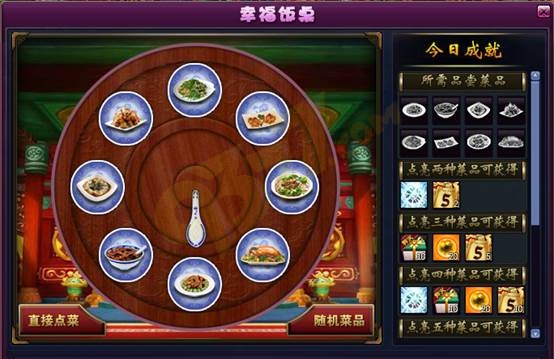 3、【幸福饭桌】每天都会刷新不同的菜品,使用饭票可以免费品尝。每天只要品尝两个以上的不同菜品,即可获得对应的成就奖励,奖励以邮件附件形式发放