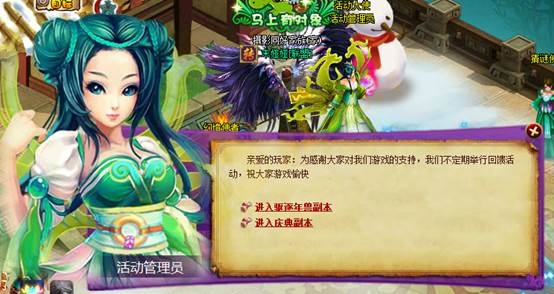 1、活动期间内,在帝都活动大使处可进入年兽副本,副本持续30分钟