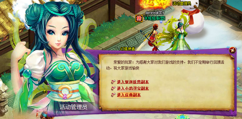 活动期间内,每天12:30开启副本,玩家可以再帝都活动大使处进入,副本持续30分钟。