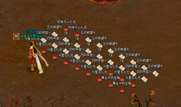 怪物死亡时,将会掉落大量威望,荣誉,金币道具,对怪物造成最后一击者拥有掉落物的优先拾取权。
