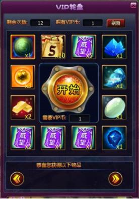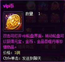 玩法:双击vip币可打开vip轮盘界面,转动轮盘后可获取奖励,每天只能转动轮盘12次