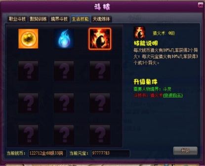 猎火术:猎火术等级越高,每次猎火的时候可以额外获得异火。