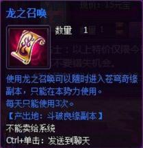 效果:使用后可以进入苍穹奇缘副本(每日三次)。斗破良缘副本BOSS掉落。