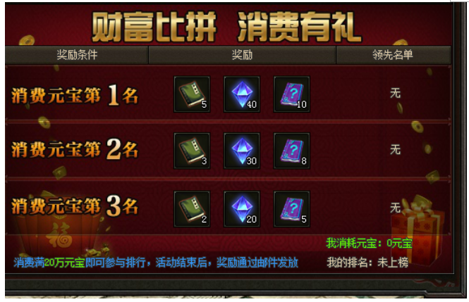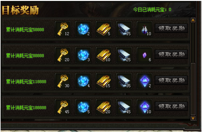 活动期间玩家每日消费达目标,即可领取相应的奖励。