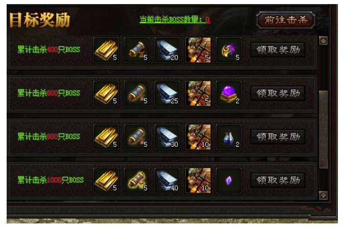 活动期间累计击杀BOSS,达成目标即可领取奖励