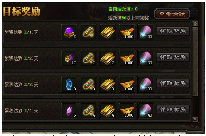 活动期间玩家每日活跃达目标,即可领取相应的奖励。累计达成活跃4天即可领取全部奖励。