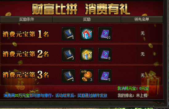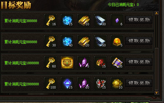 活动期间玩家每日消费达目标,即可领取相应的奖励。