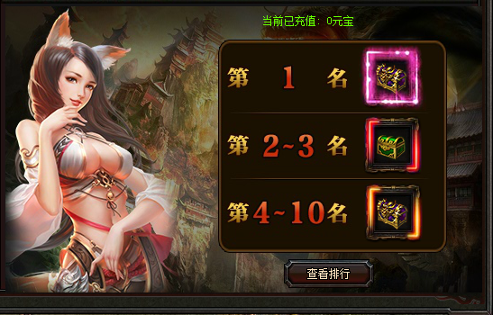 第一名可获得绝·飞升武器排行宝箱,2-3名获得绝·飞升衣服排行宝箱,4-10名可获得绝·飞升防具箱