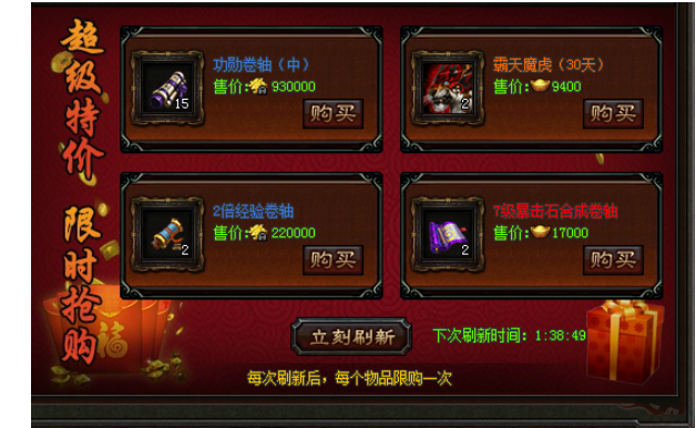 活动期间在神秘商店中会刷出众多低价极品道具,更有非商城出售道具出现。超低折扣,买多赚多