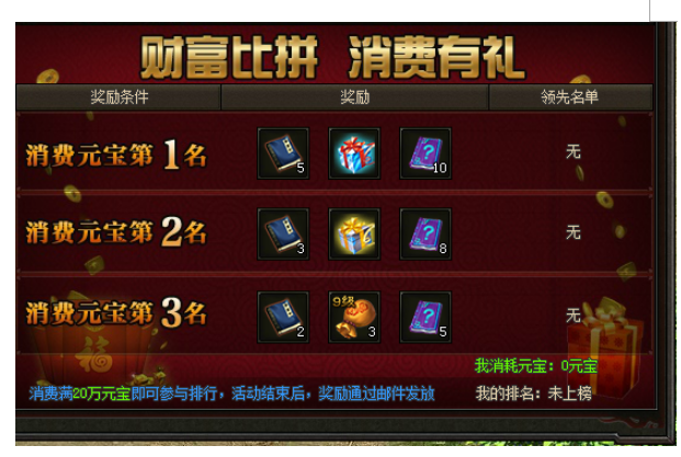 活动期间玩家每日消费达目标,即可领取相应的奖励。