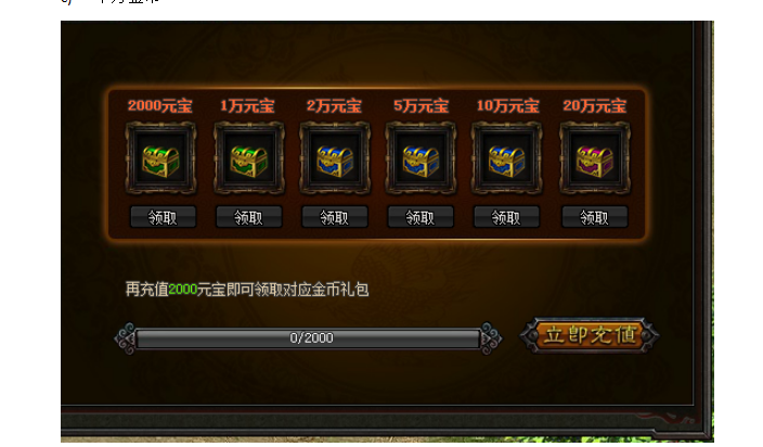 活动期间,每日充值达成目标即可领取金币宝箱,开启金币宝箱即可获得大量金币。