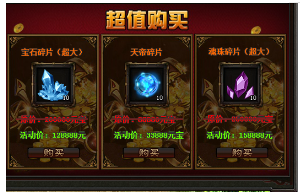 活动期间,在超值购买中可以更低的折扣购买超值道具。