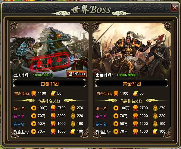 Ø 世界BOSS 每天开放时间:早上10:00-11:00