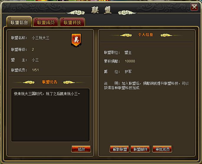 当玩家创建联盟后,会进入到新的联盟界面中去,此时玩家可以进行以下活动: