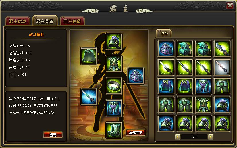 包括装备、器魂、官爵所带来的数值加成,都会直接影响所有武将——对魏蜀吴和群雄的武将都会起效。