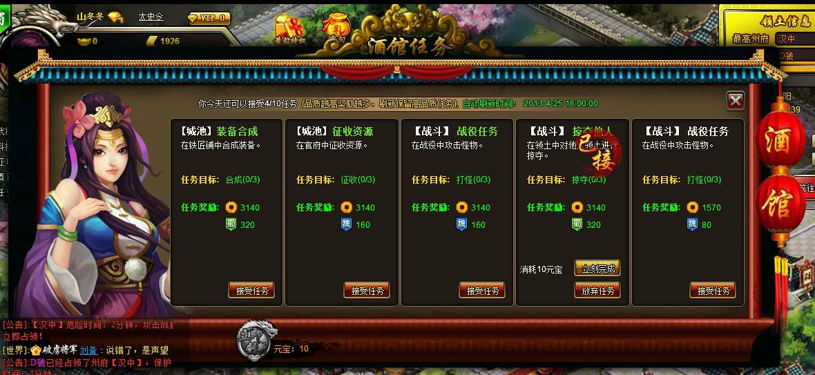 此功能为VIP会员尊享的功能。点击刷新次数越多,高品质任务出现的几率越大。
