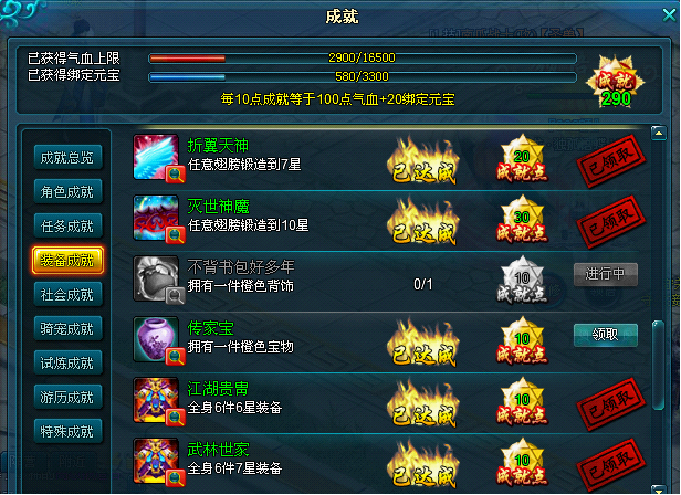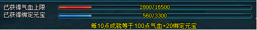 3)新增完成成就点的气血上限提升奖励以及绑定元宝奖励。