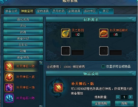 装备神炼道具合成公式(可在炼丹系统中神装宝符分页装备神炼处合成):