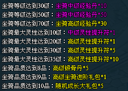 活动期间坐骑的等级、最大灵性、品质分别达到要求时,将可领取对应的活动奖励!