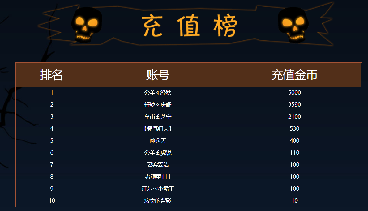 10月30日至10月31日【充值榜】不给糖就捣蛋,万圣超优惠充值来袭