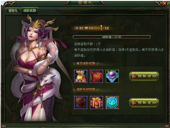 1. 每天签到后可获10点活跃值,每天签到都可以领取活跃奖励