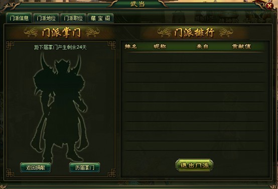 u 贡献值作用:可用于兑换门派商店内道具;每月1日门派贡献值最高的玩家可获得掌门之位;
